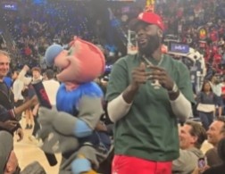 广州配资网 老熟人!史蒂芬森现身快船主场&吉祥物邀请他一起发T恤
